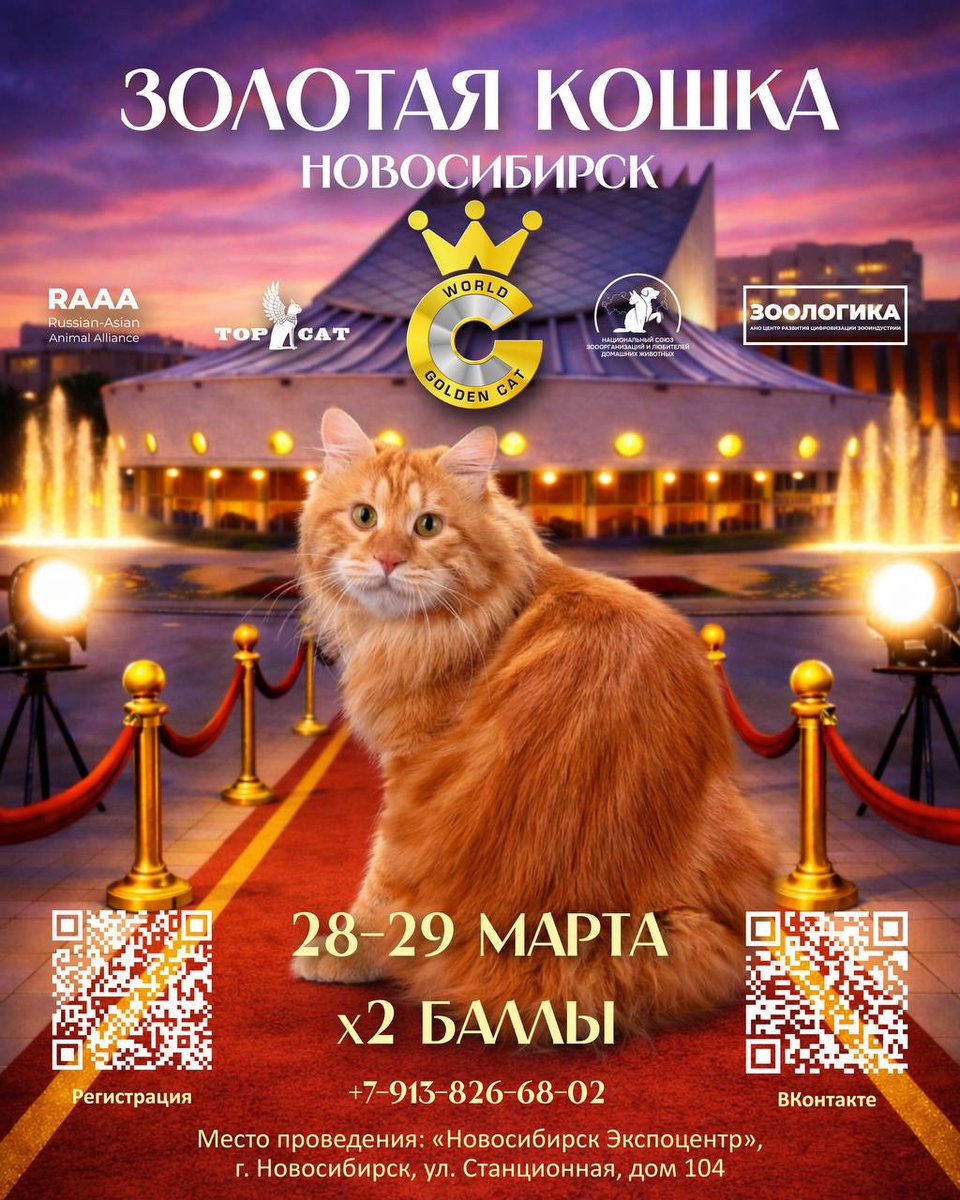 Дорогие друзья, приглашаем Вас 28-29 марта на Международную выставку кошек по системе «ТОПКЭТ» и специальный ринг «Золотая Кошка Сибири» (отборочный тур Всероссийского финала)